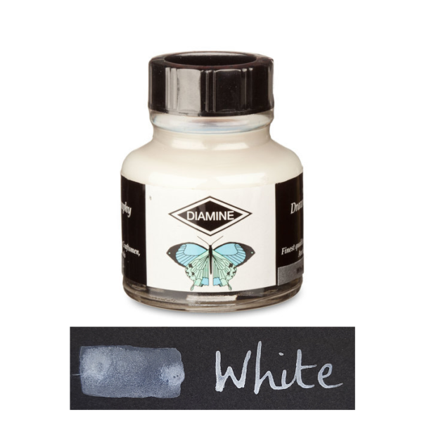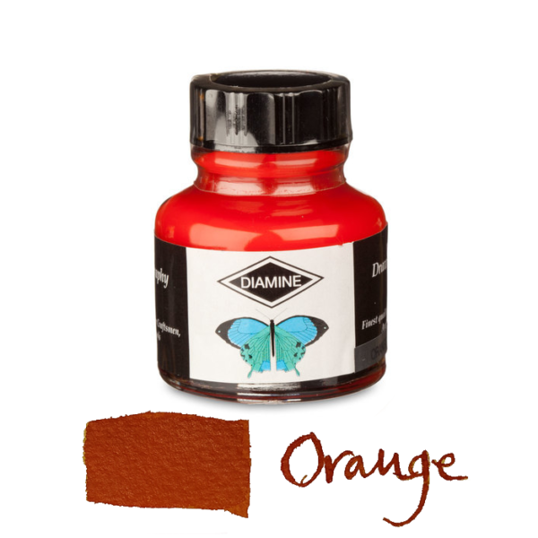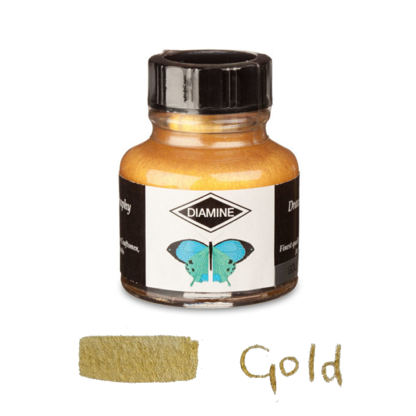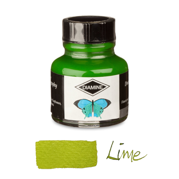 Diamine Calligraphy ink is for use with brushes or dipping pens – not fountain pens, which will be clogged up. Diamine calligraphy ink comes in an range of vibrant colours that can be mixed to produce a much wider variety of shades. They are water soluble, so you can soften the intensity of colour by mixing them with water, which will also clean your pen or brush while the ink is still wet.
