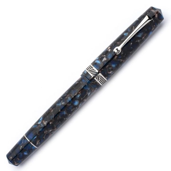 Featuring Warm brown tones sprinkled with deep blue, Leonardo’s Pietra Salata is a reminder of elegant villas and the beautiful coastal waters of Capri. Leonardo’s piston filler pen has been designed to the highest standards, with a 1.5ml ink capacity and transparent ink window. The cap is characterized by a central band perforated with a detail of the decorations belonging to the period known in the history of art as “geometric art” and therefore means the production of decorations of Greek civilization between 900 and 700 BC, which takes its name from term traditionally used for ceramics, production of the same period.