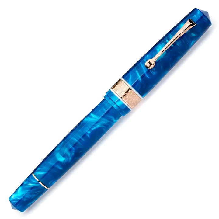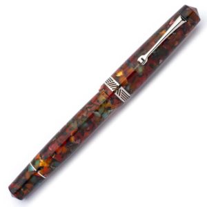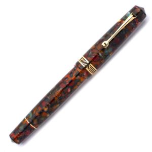 The Leonardo Momento Magico Pithecusa is a piston filling mid-sized fountain pen with ink window and a choice of nibs. It is made of resin.