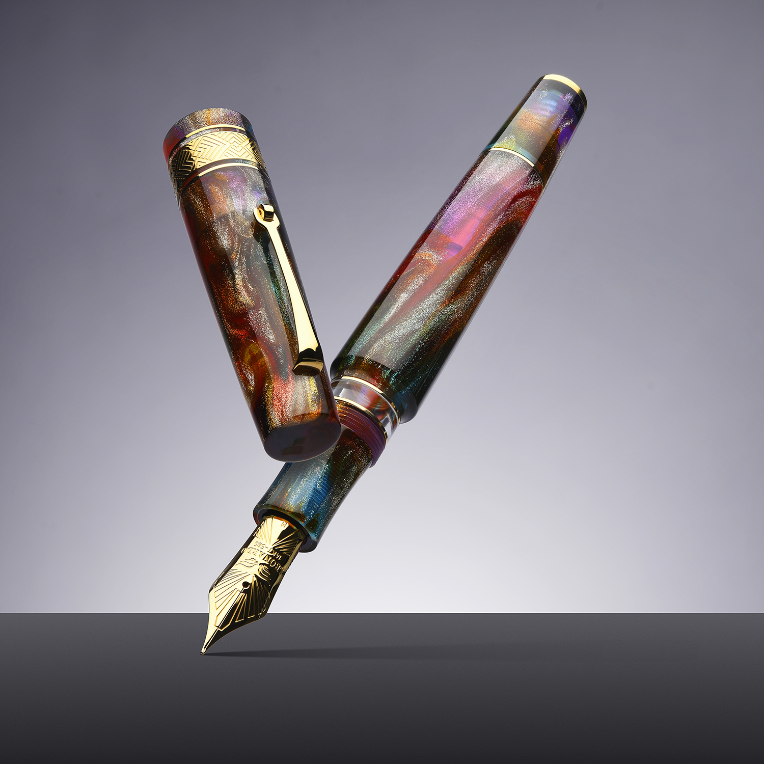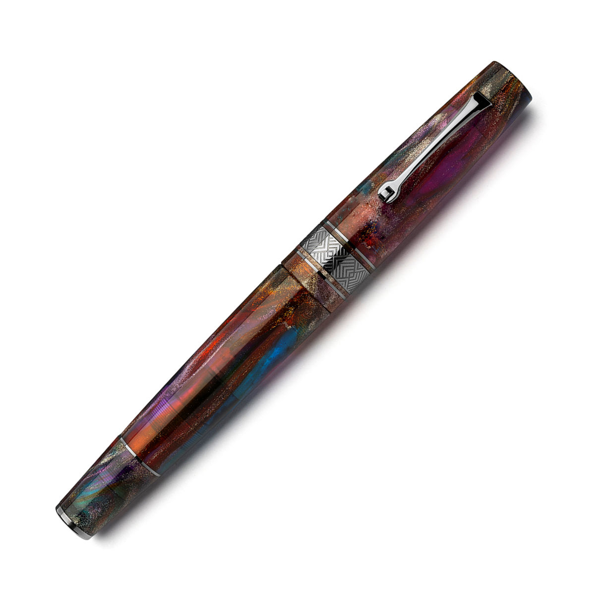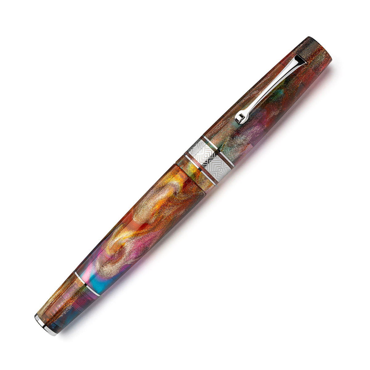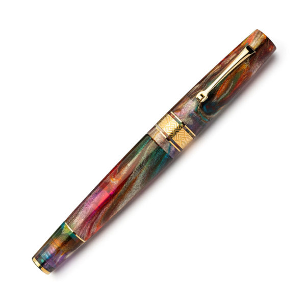 Blending Cutting edge Italian design with beautiful resin and expert craftsmanship Leonardo have created this pen in collaboration with Johnathon Brooks, using his spectacular Primary Manipulation 5 Resin. Cosmically inspired the pen features bright sparkling reds, yellows, purples, and blues all with a semi translucency the pen lives up to its name, capturing the vibrancy and brightness of a supernova.
