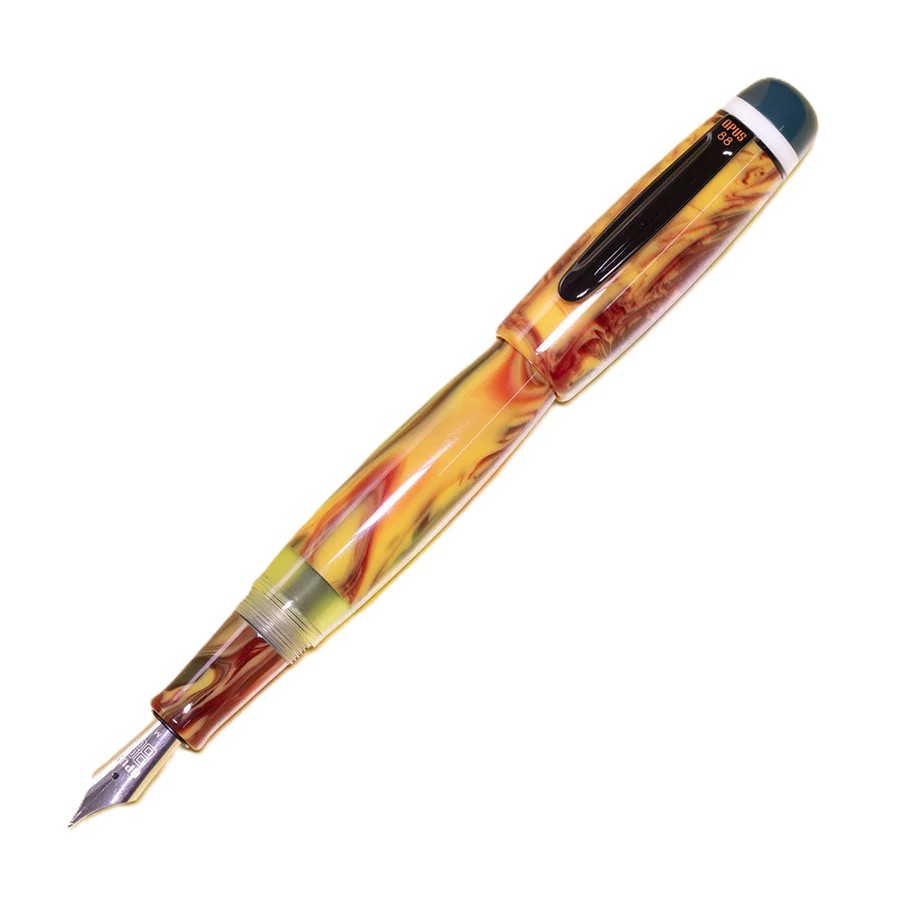 The Bela is a generous size fountain pen, this chunky pen is surprisingly lighter and sits comfortably in the hand. Opus 88 has released the Bela with the choice of two stunning colours of swirling reds, blacks and yellows for the red and blues, black, and greens for the blue. The pocket clip is a glossy black matching both ends of the pen.