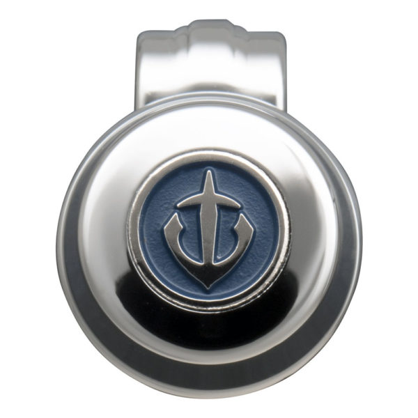 Sailors Professional Gear Anchor is a subtle reimagining of Sailors Pro Gear fountain pen, slightly longer and less round than a standard Pro Gear, the Anchor has been designed to have a sharper silhouette. This design has been reinforced by the large metal trim pieces and the plated brass section, giving the pen an refined modernist look. The body of the pen is made from a deep blue transparent resin and is available in three different trims.