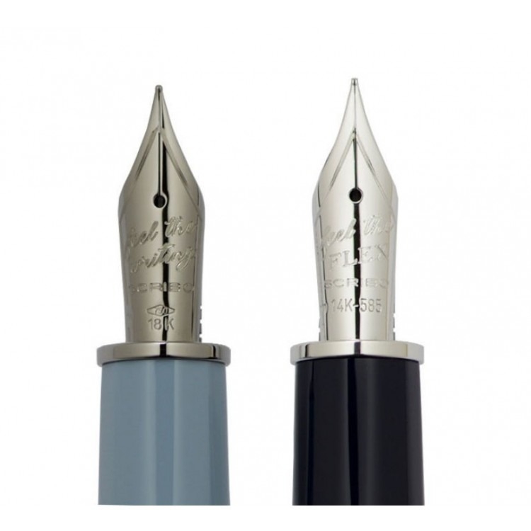 The SCRIBO Feel is an elegant new fountain pen. It is available in Blue Black, with rhodium appointments, or Grey Blue, with dark Ruthenium appointments.