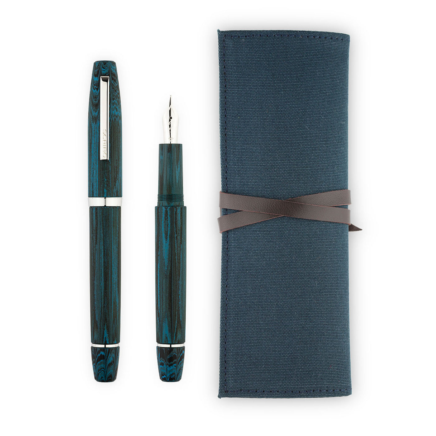 Tempo is the quiet passage of time, an invisible thread traced across paper anchoring memory to the moment, something that connects ideas to their inception and to the future they create. Hand crafted from a deep blue ebonite, the body of Scribo Flow Tempo is veiled with dark ripples, evoking the silent pulse of hidden waters, accompanied by a strikingly bright platinum trim this exclusive colour has been produced in limited quantities with only 88 Pieces Worldwide