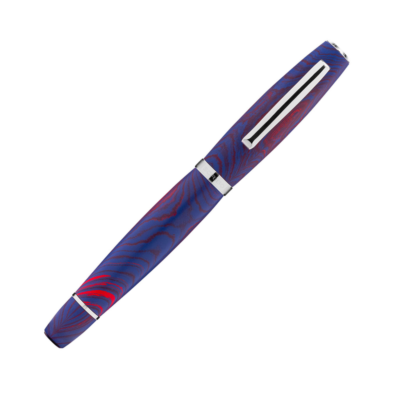 The fantastic ebonite body is primarily blue, with swirls of red to give a very impressive looking pen. Just 90 of this pen have been made, making it a very limited edition. The pen is completed with Platinum trim for all its metal components.