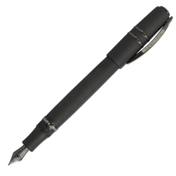 The Visconti Homo Sapiens Dark Age Oversized Fountain Pen is made from ground lava from Mount Etna, on the Island of Sicily, which is ground and mixed with a durable resin to form a unique pen material that is almost indestructible. These extraordinary pens have a soft, warm feel in the hand, and because the material is slightly hygroscopic it also feels very dry to the touch.
