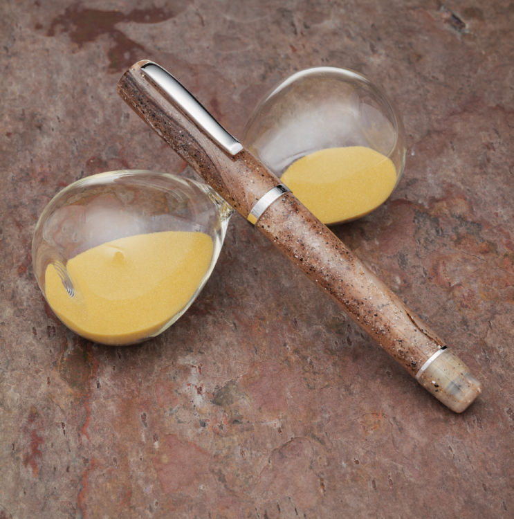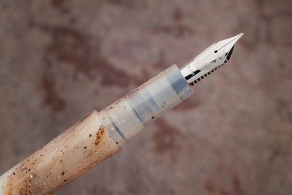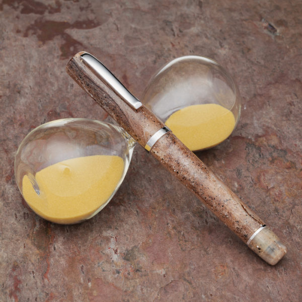The Write Here SCRIBO Sandwood is a piston filling fountain pen made for us by Scrittura Bolognese, direct descendants of OMAS. The design by Flaminia Angelone has not changed since the first edition in 2017. A cylinder, slightly tapering at cap and base, has a long and elegant section offering accommodation for those who like to grip close or far away from the nib. It offers a range of 14ct flex and 18ct gold nibs. The body is resin, the cap screw-on and features the words “Write Here” and “Made in Italy” on the band. It has a strong and elegant clip. It does not post.