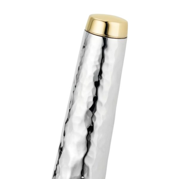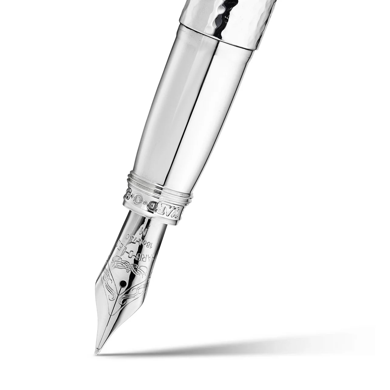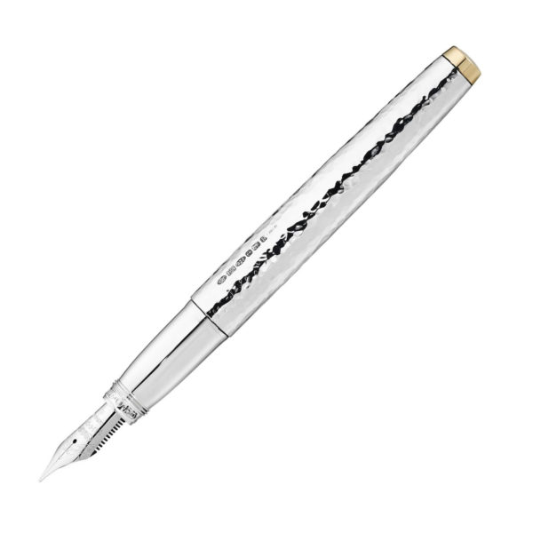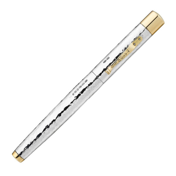 The Grand Martelé exists as both a refined evolution of Yard O Led’s “Grand” Model fountain pens, and as celebration of the artistry and heritage of traditional silver craftsmanship. Each pen is crafted in Birmingham, individually worked by one of Yard O Led’s artisans, utilising a planishing hammer to create the Martelé finish, giving each pen a unique surface, able to reflect the light with subtle variation and depth. both the cap and barrel of the pen have been hallmarked as sterling silver